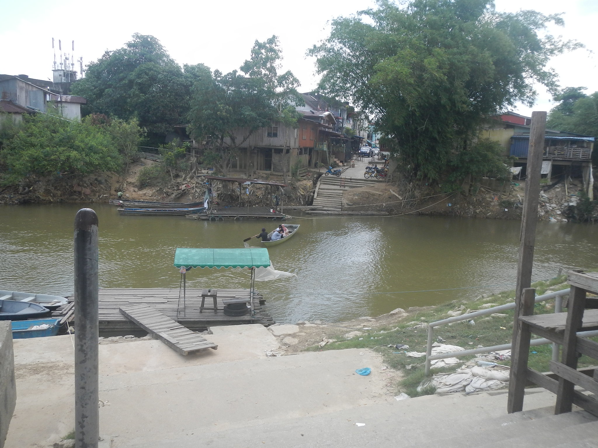 川を一本隔てて国が変わるが、タイに比べると看板の文字がちがうぐらいで大きな相違はないが、かすかに建物にマレーシアらしい南国感やコロニアル感が増す。